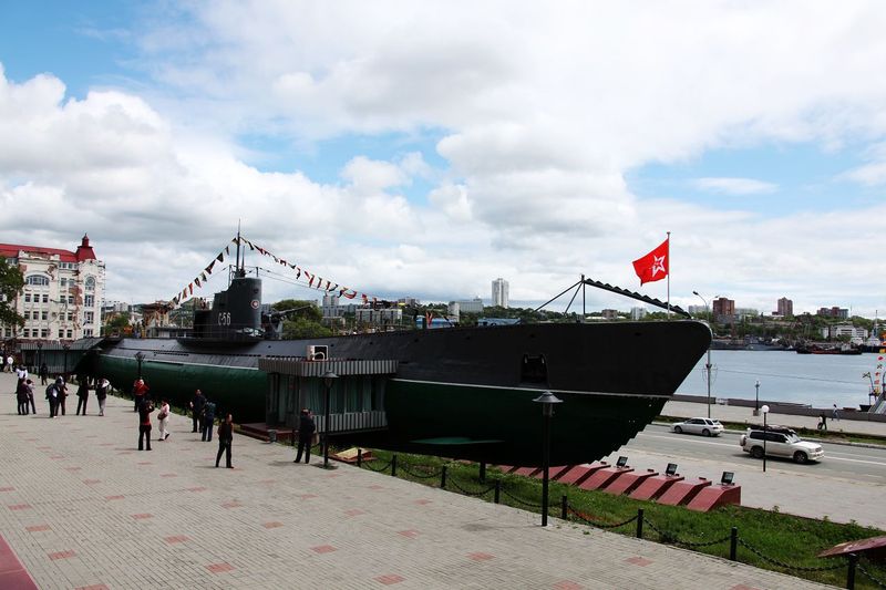 ▲【C-56潜水艇博物馆】:在海参崴的「太平洋舰队的战斗荣誉纪念碑」广场上,矗立着一艘真实的退役潜艇,它是曾荣获红旗勋章和禁卫军称号的「C-56号潜艇」。